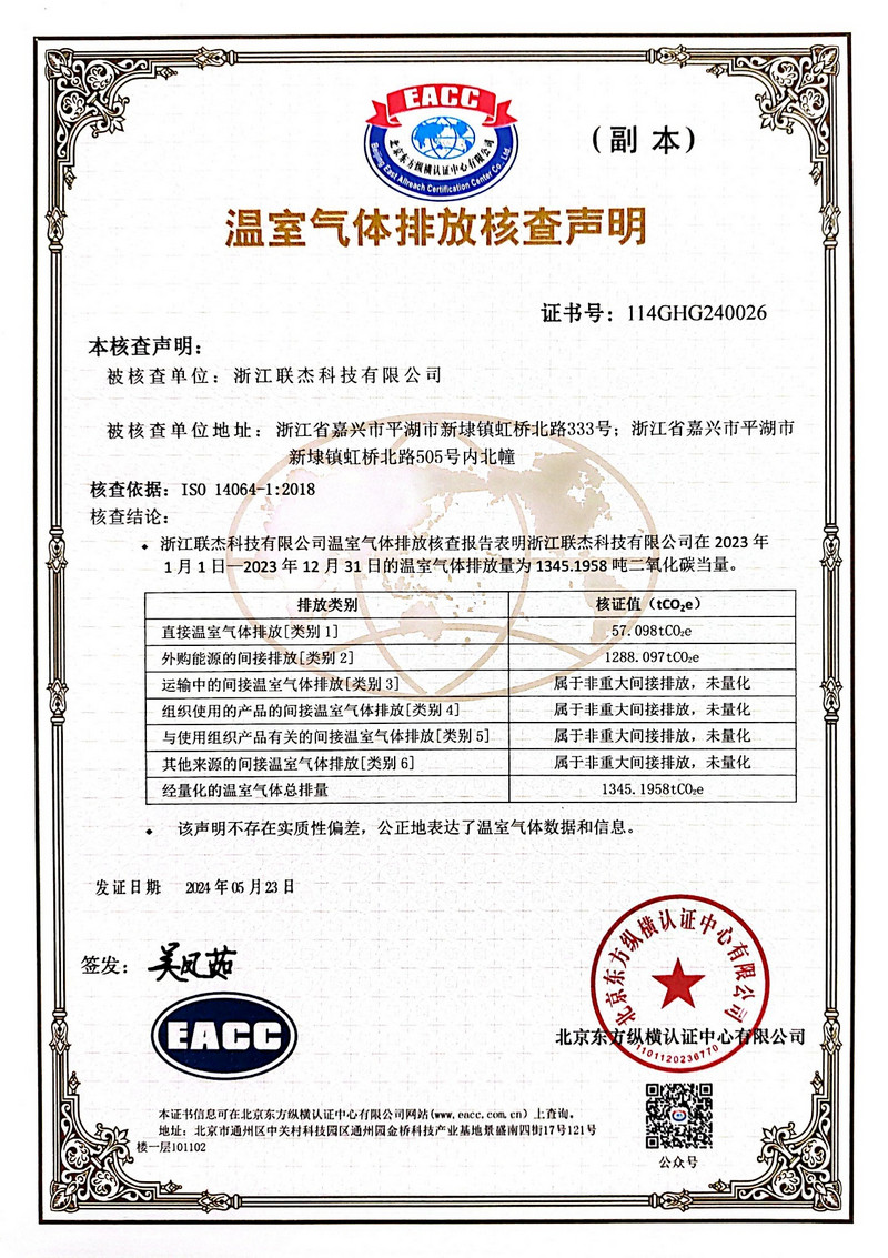 近日,浙江联杰科技有限公司凭借在绿色生产、节能减排、环境管理等方面的突出表现,成功通过市级绿色工厂评审,荣膺市级绿色工厂称号。这不仅是对我们多年来坚持绿色发展理念的肯定,更是对联杰科技全体员工在环保实践中不懈努力的最佳见证。